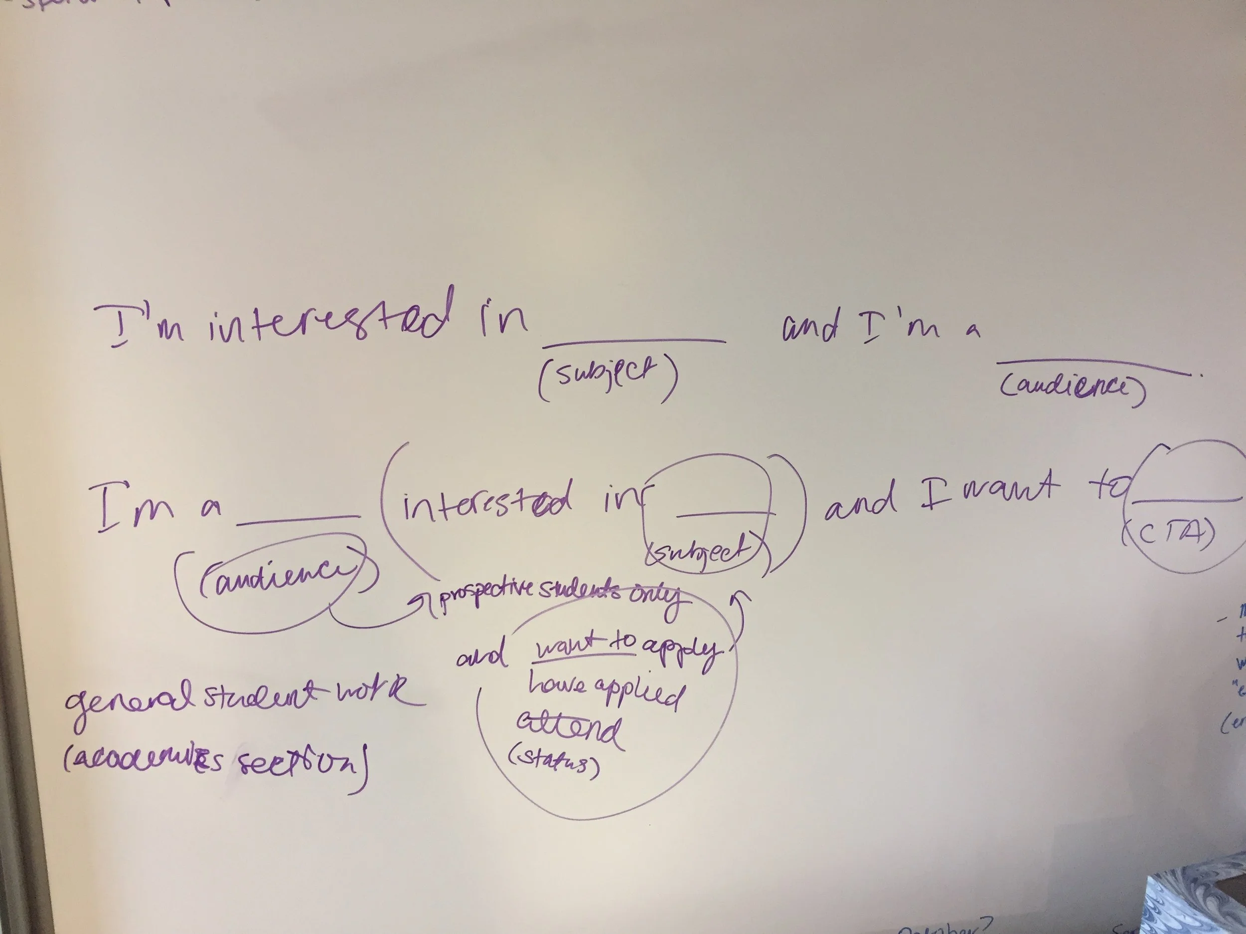 I started the process by focusing on different audiences and their intended tasks. There are significantly more user groups that use the website now versus when the website was redesigned in 2013, which focused primarily on prospective students. I had the idea to give users a menu of options that would change based on their role and task, which would also complement the navigation. I was responsible for working with stakeholders, performing audience background research, creating the interface designs, and determining tasks for each audience throughout the year.