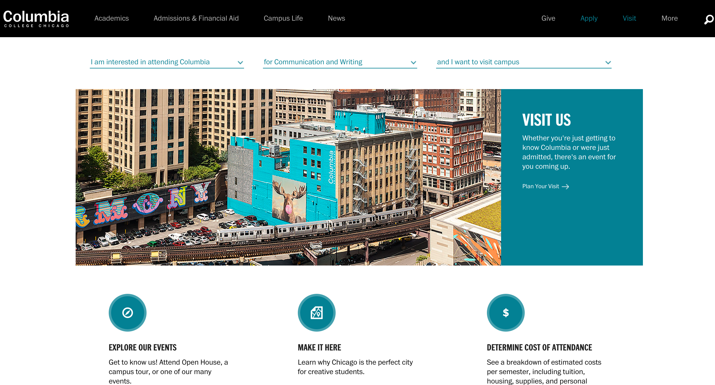 Redesigning the college’s home page gave me the opportunity to expand the amount of storytelling content to engage users, and to better highlight the “why” messaging for the college.